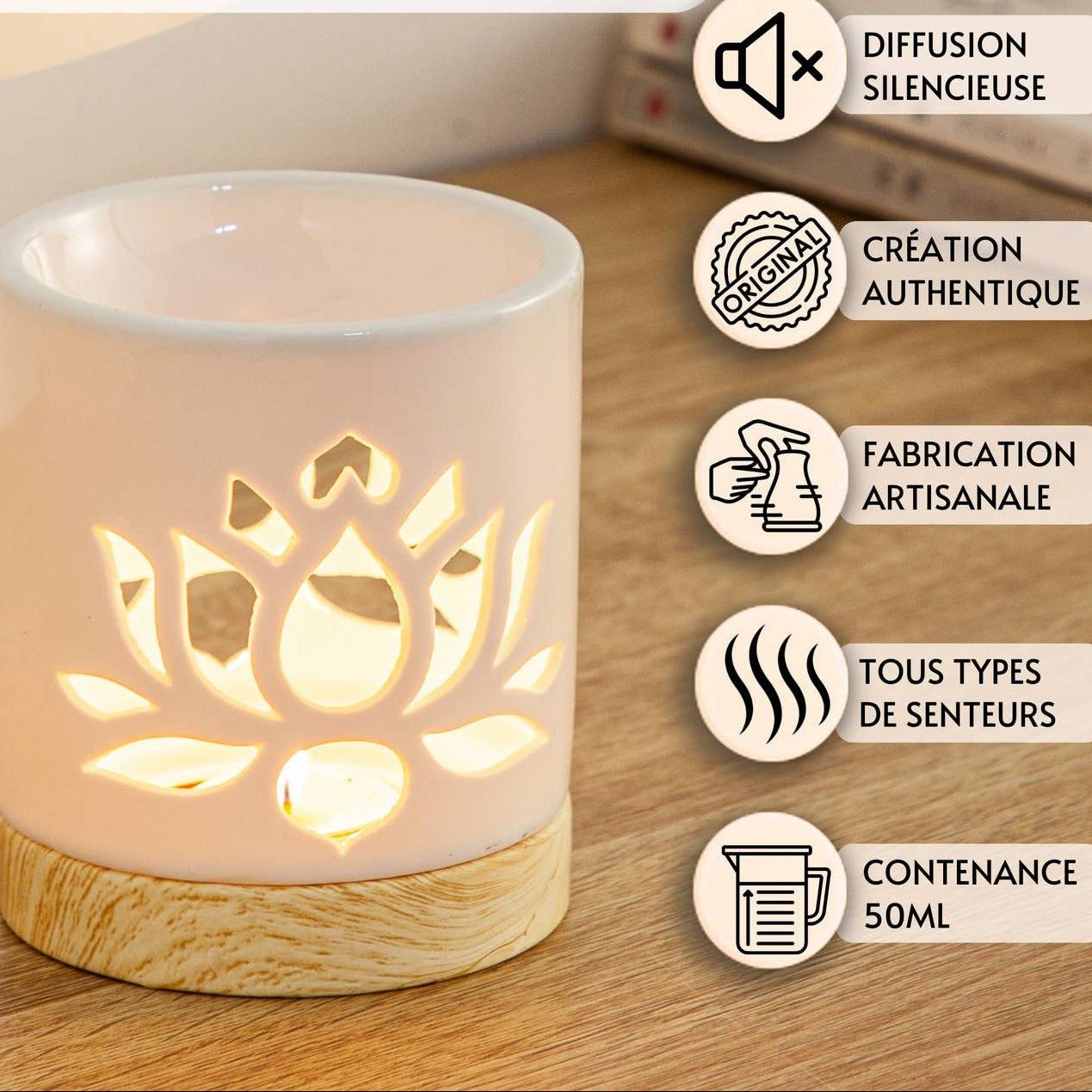 - Cire parfumée : Faites fondre vos carrés pour une diffusion intense et longue durée